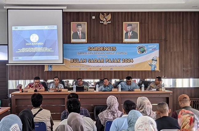 KABUPATEN CIAMIS – Dalam suasana Bulan Sadar Pajak 2024 Badan Pendapatan Daerah (Bapenda) Jawa Barat melalui unit P3D Wilayah Kabupaten Ciamis menyelenggarakan Kegiatan Sarasehan Dengan Samsat Ciamis (SARDENCIS) bertempat di Aula Kantor Kecamatan Ciamis, pada tanggal (10/06). Kegiatan ini bertujuan untuk meningkatkan kesadaran dan kepatuhan masyarakat dalam membayar pajak.